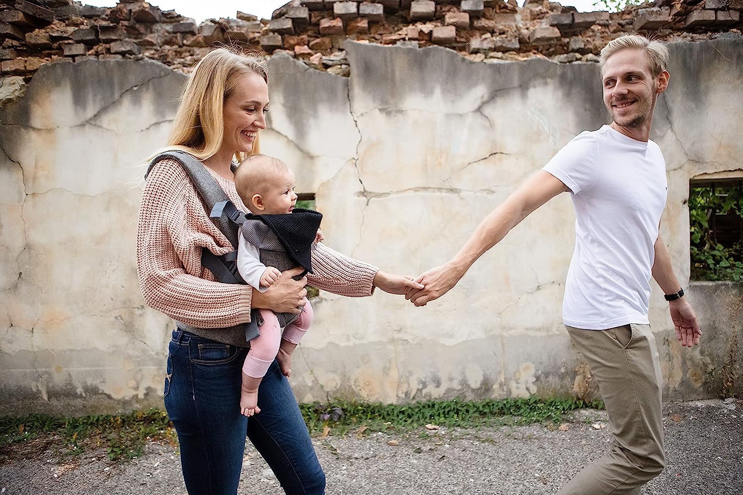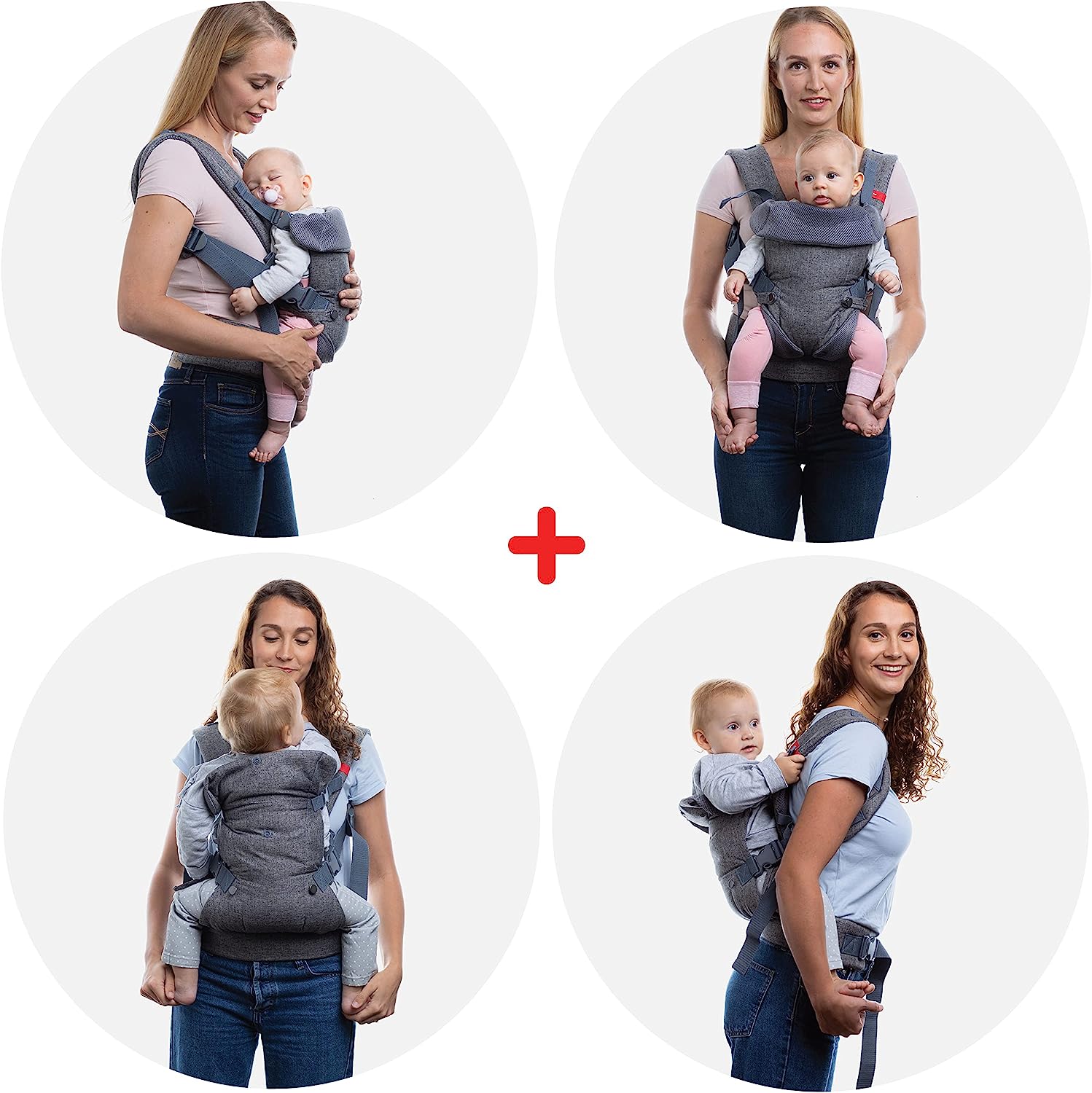 Za otroke od 3,6 do 14,5 kg (11,6 do 14,5 lbs), 4 položaji za nošenje, od dojenčka do malčka, 3D mrežna podloga za odličen pretok zraka. Vključuje eleganten slinček 2 v 1, ki ga lahko uporabljate z nosilko ali ločenoPopolno prileganje za vse skrbnike, od majhnih do velikih velikosti.