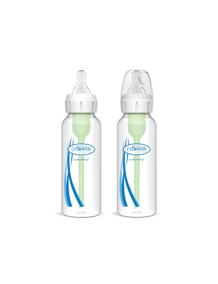 – Dr. Brown’s steklenička optimalno deluje z nameščenim notranjim prezračevalnim sistemom, ki ga je tekom otrokovega razvoja mogoče tudi odstraniti in zato ni potrebe po drugi steklenički.