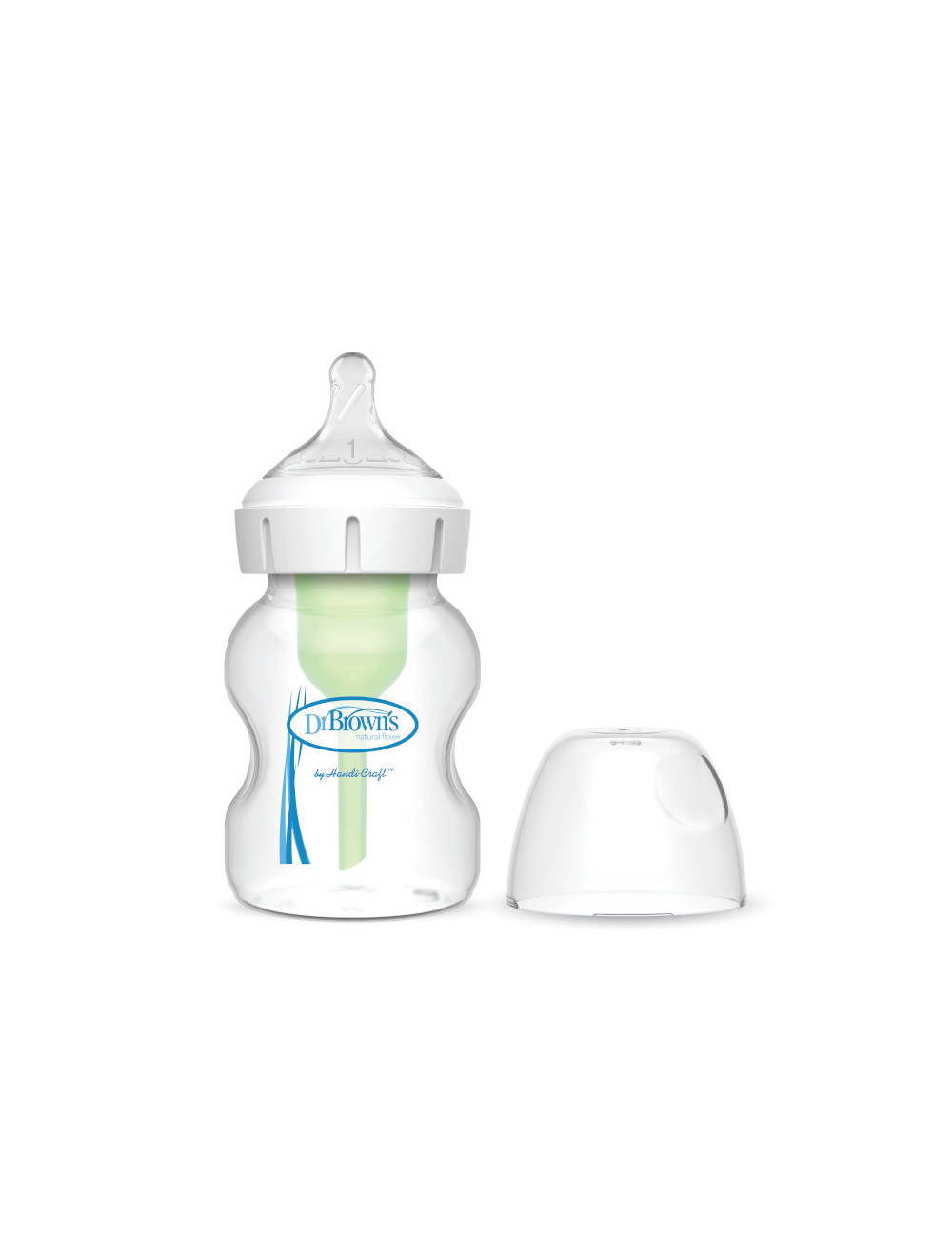 – Dr. Brown’s steklenička optimalno deluje z nameščenim notranjim prezračevalnim sistemom, ki ga je tekom otrokovega razvoja mogoče tudi odstraniti in zato ni potrebe po drugi steklenički.