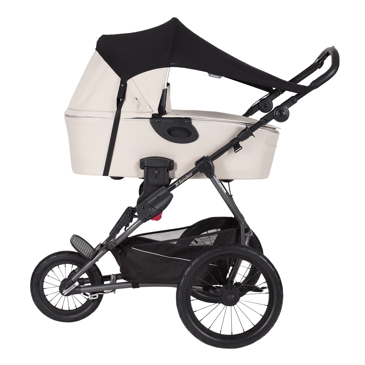 Senčni ščitnik za voziček ima univerzalno obliko, zaradi česar se prilega vsakemu modelu vozička in nosilke X-lander.