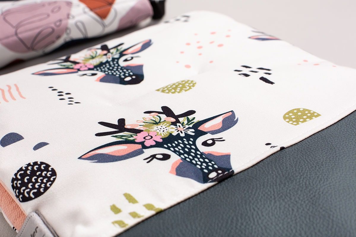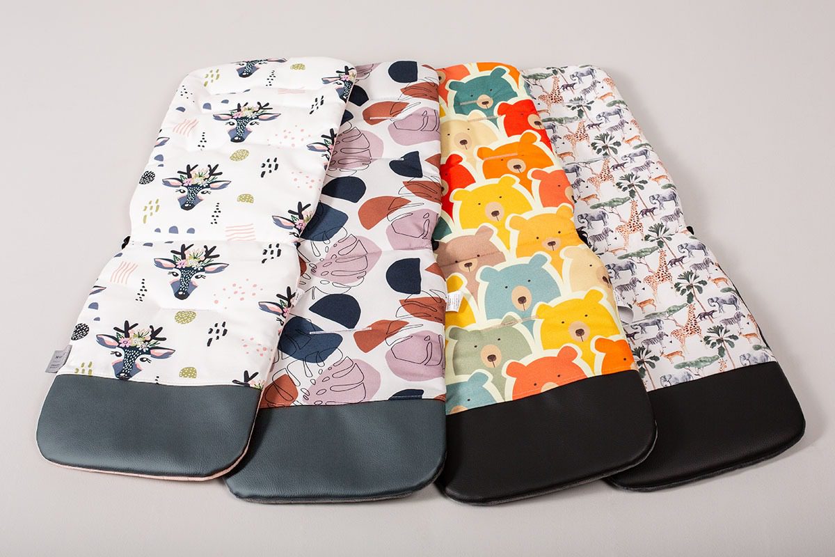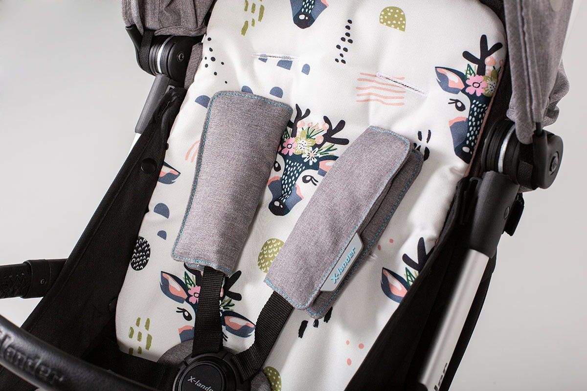 Obe tkanini izpolnjujeta zahteven standard OEKOTEX 100, ki ga zahtevajo visokokakovostni otroški izdelki. V notranjosti je mehko, hipoalergeno polnilo. Vložek za voziček je mehak in izjemno prijeten v stiku s kožo ter ščiti občutljivo otroško kožo. Poleg tega ščiti oblazinjenje vozička pred umazanijo. Ima lahko abraziven material na mestu, ki je izpostavljeno umazaniji iz čevljev. 3-stopenjske odprtine v vložku omogočajo popolno vodenje pasov skozi njo na kateri koli višini. Ima dodatne pritrdilne vrvice, ki držijo vložek na mestu in preprečujejo zdrs ali zvijanje