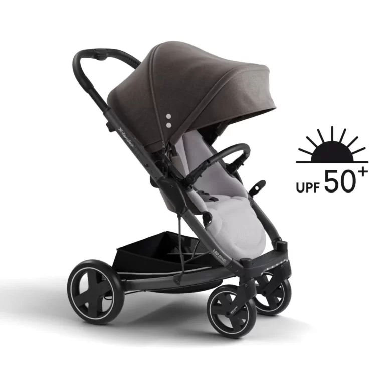 Tkanina UV50+ Ena od predpostavk pri oblikovanju vozičkov je varnost in zdravje otrok. Vse tkanine za vozičke imajo najvišjo UV50+ zaščito. Zahvaljujoč tej zaščiti škodljivi, močni UV-žarki ne pridejo v notranjost prenosne košare ali prekritega dela sedeža. Velika UV50 kapuca skoraj v celoti ščiti otroka, skrbi za njegovo zdravje in zaščito pred škodljivimi zunanjimi dejavniki.